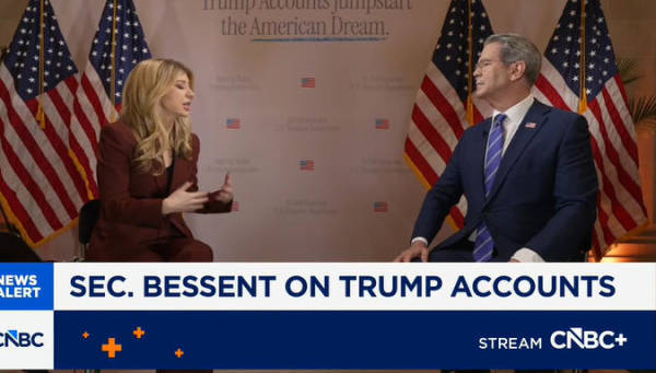 贝森特28日接受采访,再点卡尼CNBC视频截图