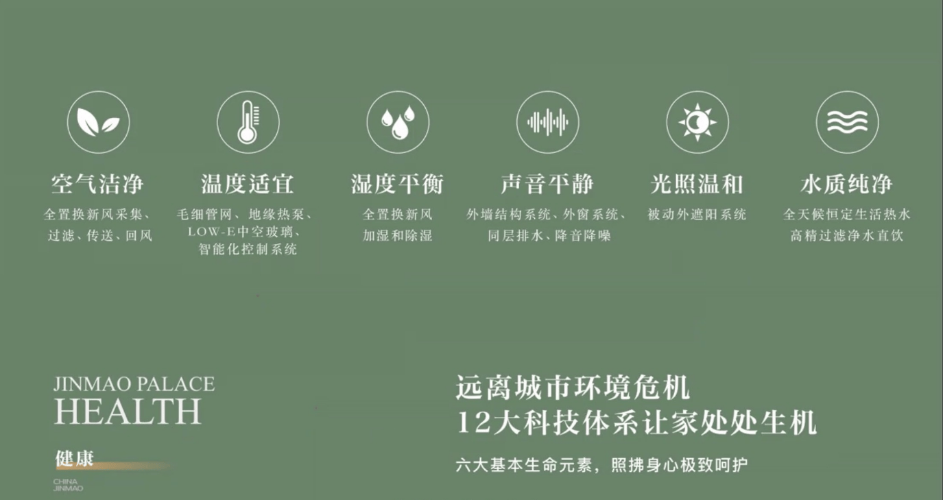 从“温度、湿度、空气、阳光、水、声音”六大基本生命元素延伸12大科技体系,实现“舒湿、舒温、舒氧、舒音、舒静”的居住环境,一年四季如春。