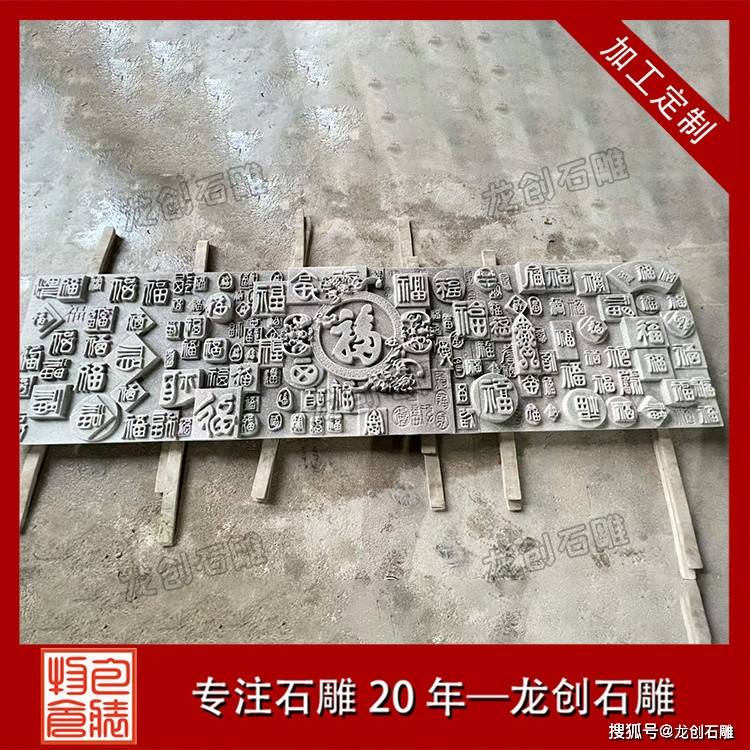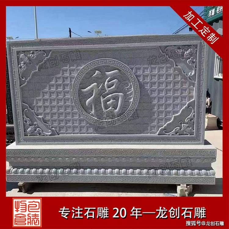 中式庭院福字影壁墙 石雕照壁屏风装饰 龙创石雕