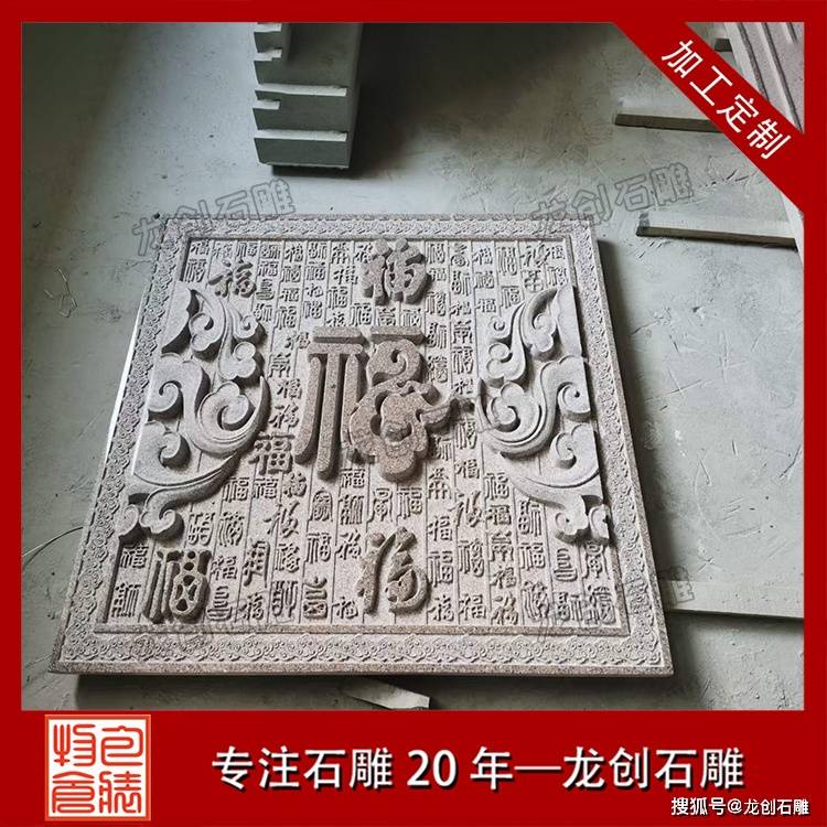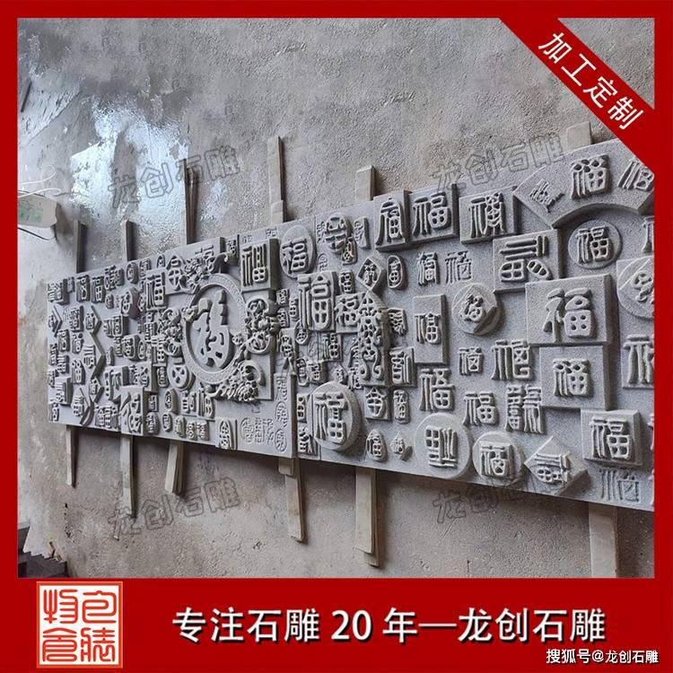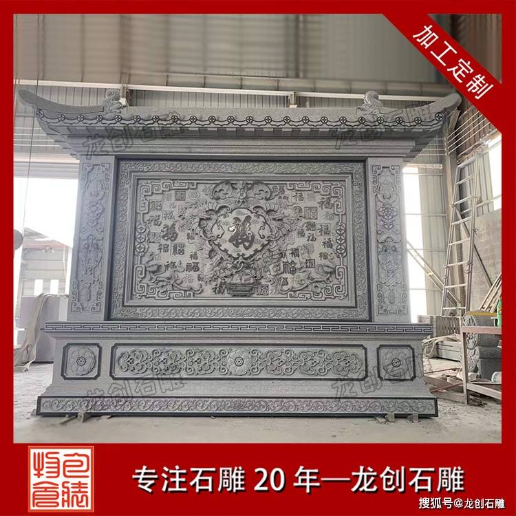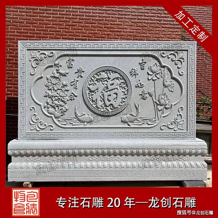 石雕福字影壁作为传统建筑装饰构件,既承载着文化寓意,又具备实用功能。这类产品通常采用青石、花岗岩等天然石材雕刻而成,以浮雕或透雕工艺呈现“福”字主题图案,辅以回纹、卷草等边框装饰。其结构一般由基座、壁身和檐顶三部分组成,形态端庄稳重,适合与现代庭院建筑相结合。