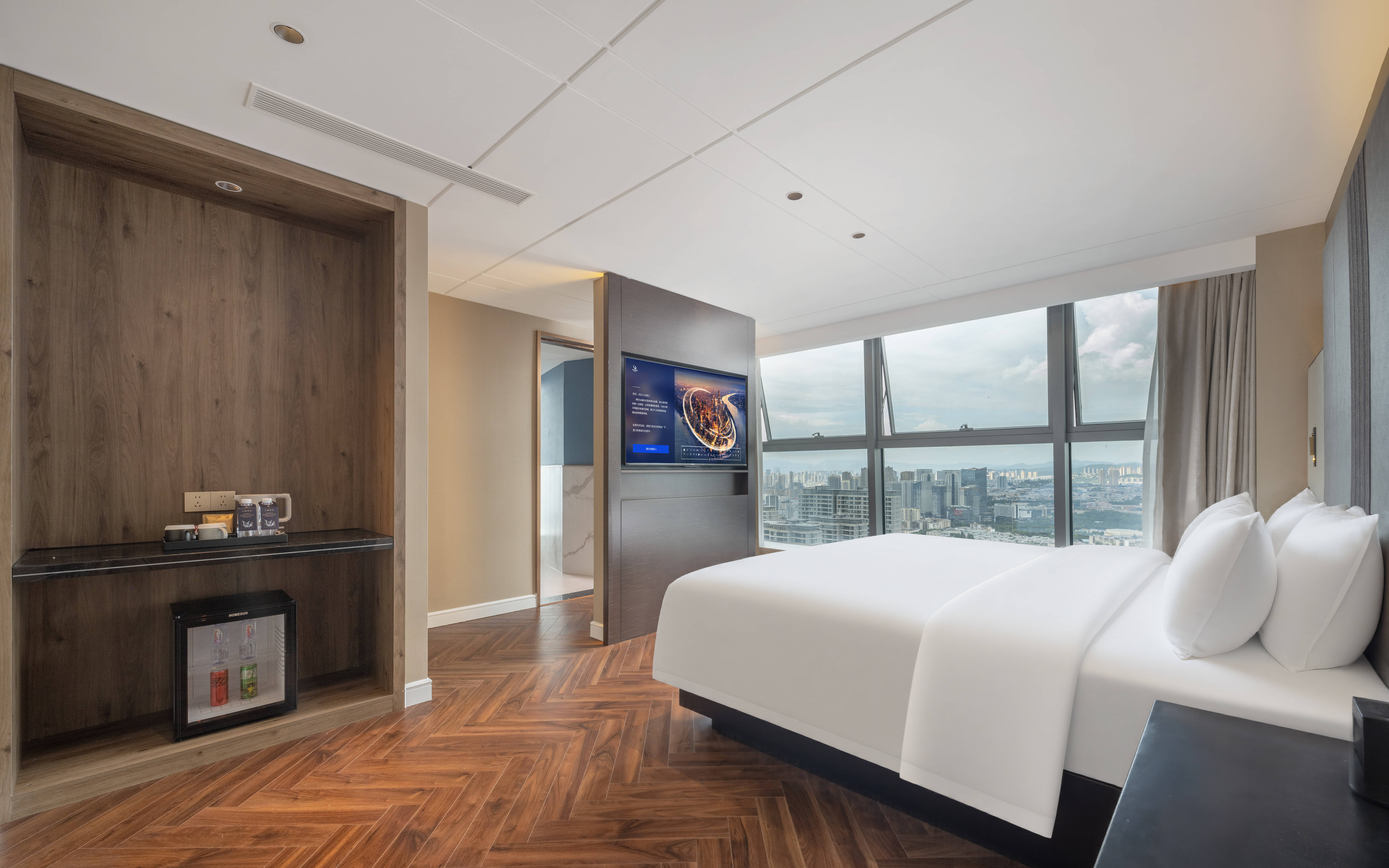 锦江都城酒店的智能化住宿体验绝对是一大亮点。客房配备了华为定制智能面板,支持语音控制灯光、空调、窗帘等设备。想象一下,早上醒来,你只需说一句“开灯”,房间瞬间亮起,科技感十足。