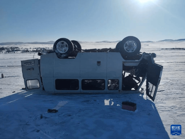这是1月28日在俄罗斯贝加尔湖拍摄的事故车辆。新华社发(俄罗斯伊尔库茨克州内务总局供图)