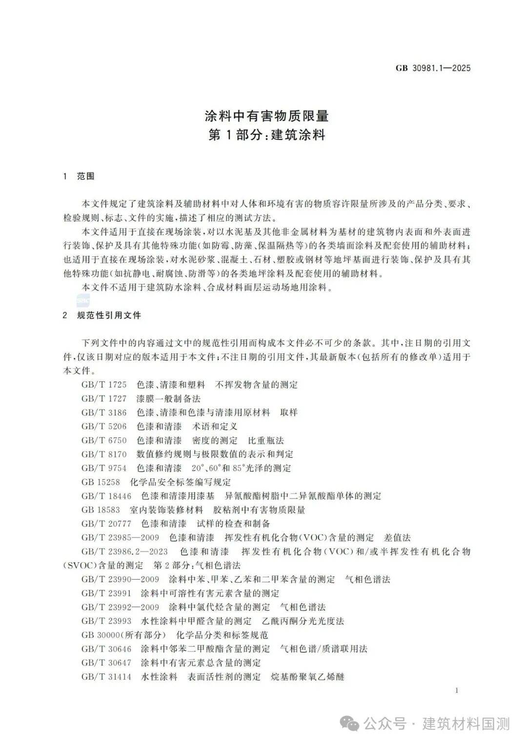 GB 30981.1-2025涂料中有害物质限量 第1部分:建筑涂料