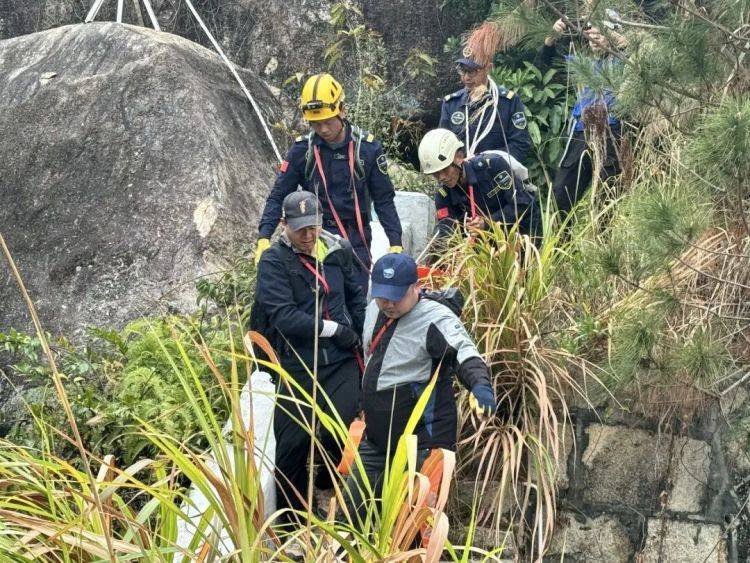 下山之路同样艰险,山谷中遍布奇形怪状、落差较大的巨石。救援队员们接力,四人一组抬着担架,其余人在两侧搀扶保护,踩着狭窄的落脚点缓慢前行。当日下午5点20分,救援队伍成功抵达山下,将受伤女子安全移交至等候的120急救人员送医救治。