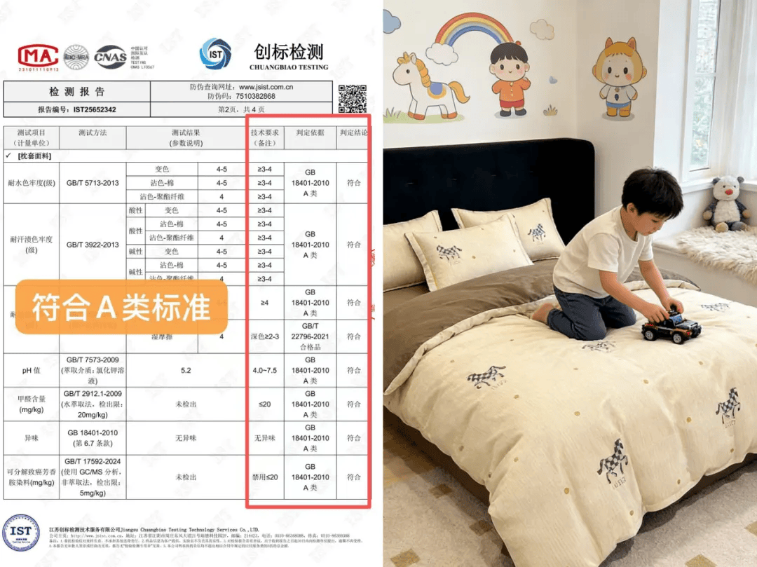 家里有老人小孩的更是强烈推荐去入,因为这款四件套还通过了A类检测标准,可以呵护我们的皮肤,贴身睡更安心。
