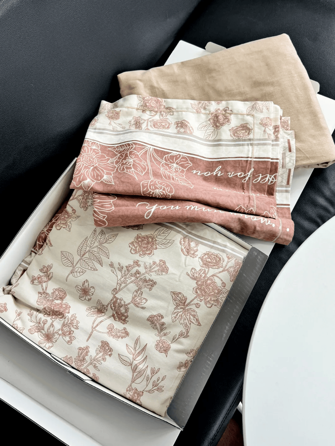 这个花色我趁着这次划算的团价又自留了一套,低饱和度的花束看起来有一种法式田园的复古慵懒感。