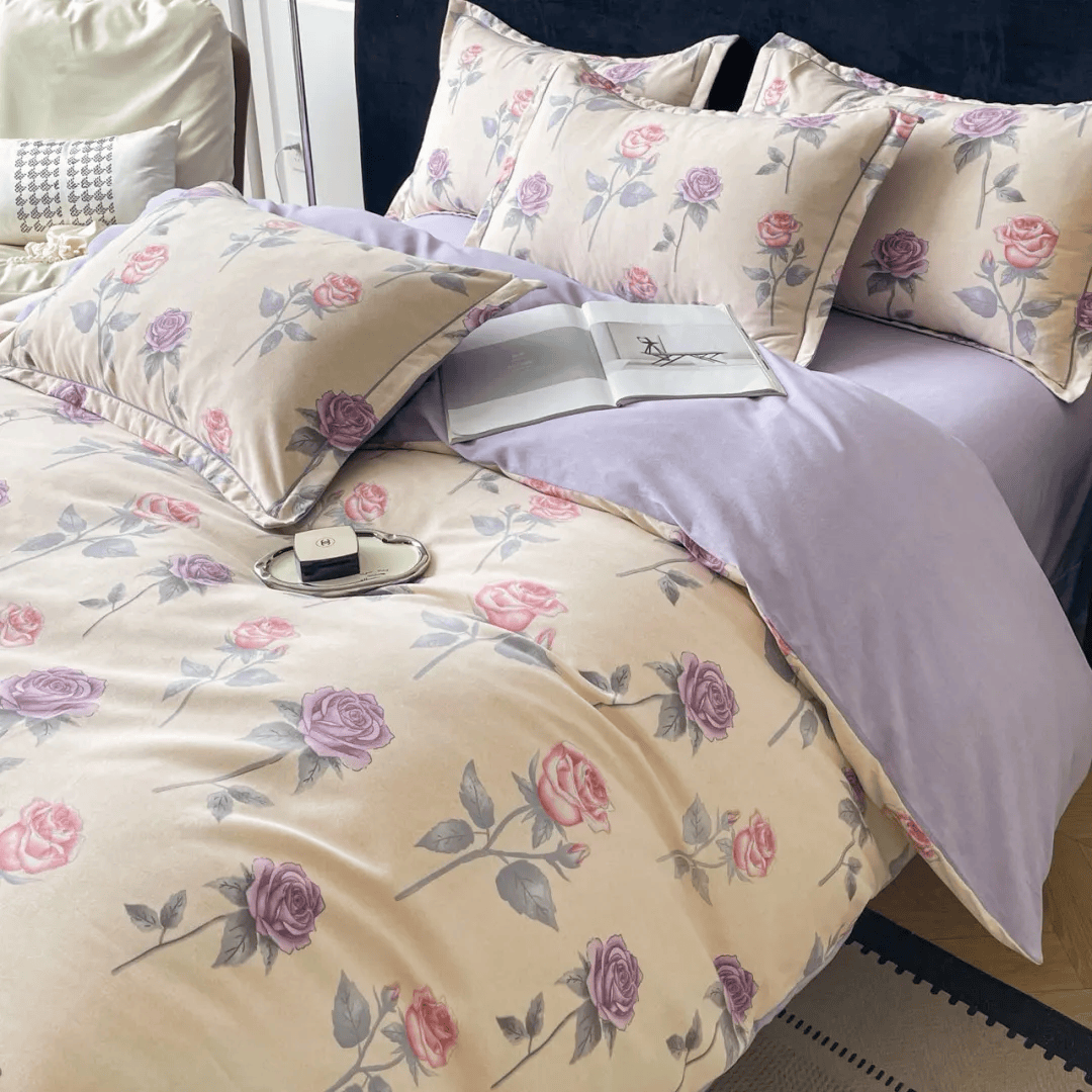 这款是温柔的香芋紫色调的,搭配浅粉色的玫瑰花,温柔中又带着点浪漫的氛围。