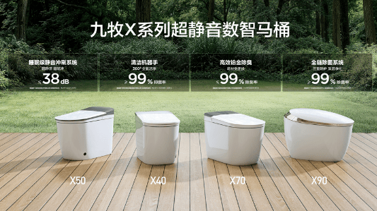 • 核心竞争力:作为连续 3 年线上市场份额超 24% 的品牌(奥维云网 2025H1 数据),九牧以 “技术普惠 + 全域服务” 破局。全球首创的 “翻转冲刷技术” 颠覆传统冲水逻辑,无喷射口结构实现 38 分贝超静音运行,搭配 UV 紫外线杀菌(杀菌率≥99.9%)与红蓝光理疗功能,兼顾洁净与健康;支持鸿蒙智联的语音控制、脚感冲水,完美适配现代家庭使用习惯。