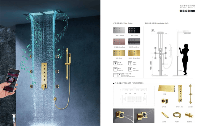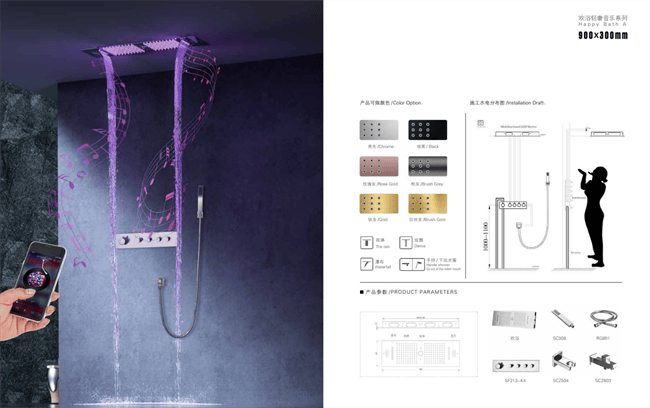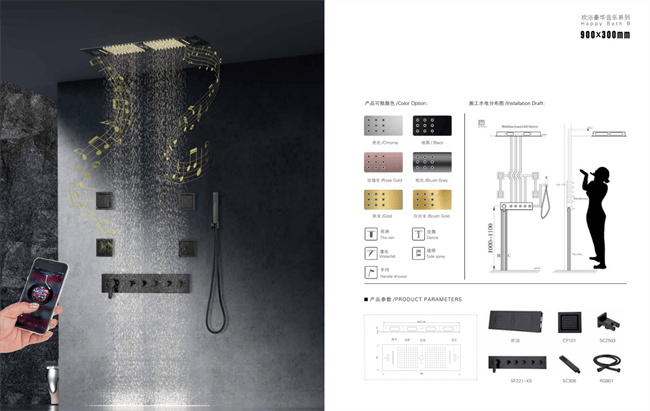 △共筑3.15满意消费欢浴轻奢音乐系列 900*300系列智能情调淋浴别墅套装