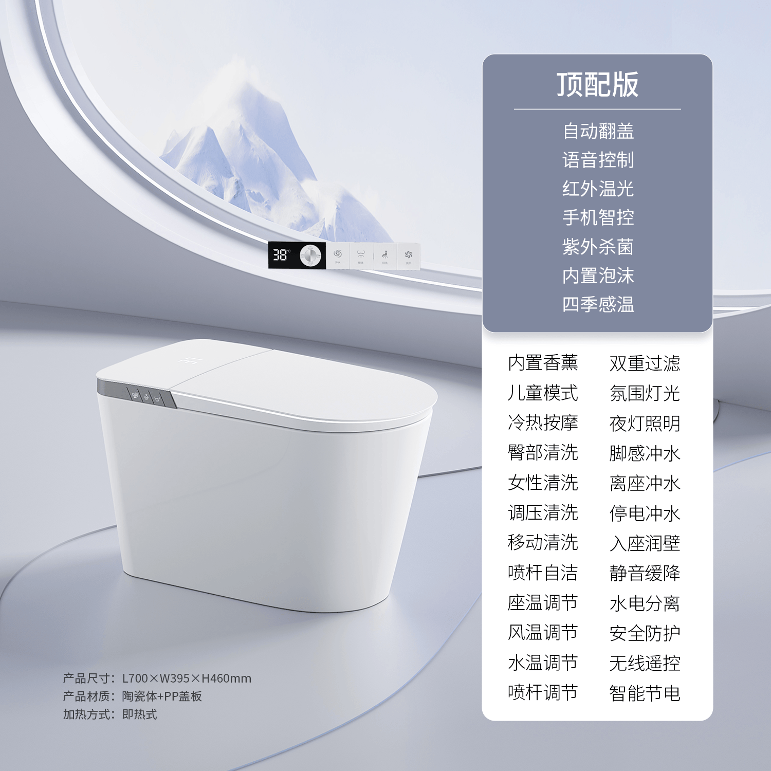 技术实力:五级旋风冲水系统通过“漩涡式水流+强劲水压”组合,冲净率较普通马桶高20%,解决了“马桶冲不干净”的问题;智能座圈采用银离子抗菌材料,抗菌率达99%,适合有儿童、老人的家庭;静音缓降盖板采用液压阻尼技术,关闭时噪音≤30分贝(相当于图书馆环境),避免夜间使用干扰家人。