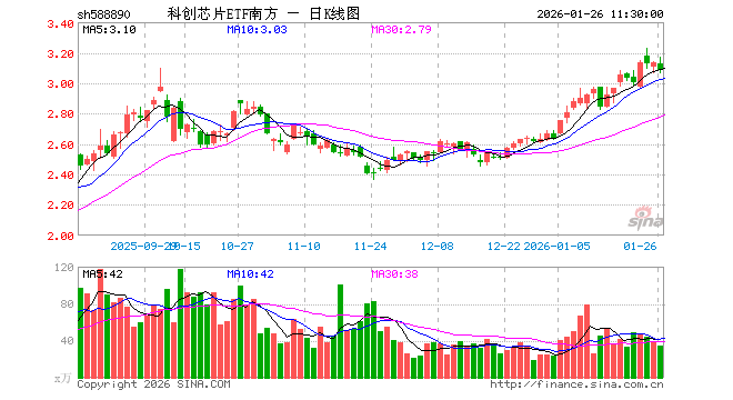 1月26日,截止午间收盘,科创芯片ETF南方(588890)跌1.53%,报3.085元,成交额1.08亿元。科创芯片ETF南方(588890)重仓股方面,中芯国际截止午盘跌1.95%,海光信息跌0.72%,寒武纪跌2.19%,澜起科技涨3.01%,中微公司跌3.41%,拓荆科技跌4.44%,芯原股份涨8.47%,华虹公司涨1.93%,沪硅产业跌2.61%,东芯股份涨6.87%。