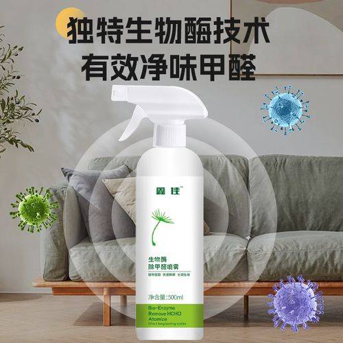 和普通遮盖型喷雾不同,它采用复合植物生物酶+可见光光触媒双效配方,植物生物酶提取自茶叶、芦荟等天然植物,能特异性催化分解甲醛,将其转化为水和二氧化碳,反应过程不依赖强光,冬季室内常温下就能快速启动;搭配的可见光光触媒,在室内灯光下就能激活,持续分解残留甲醛,还不损伤家具、布艺表面,干透后不留印、无异味。