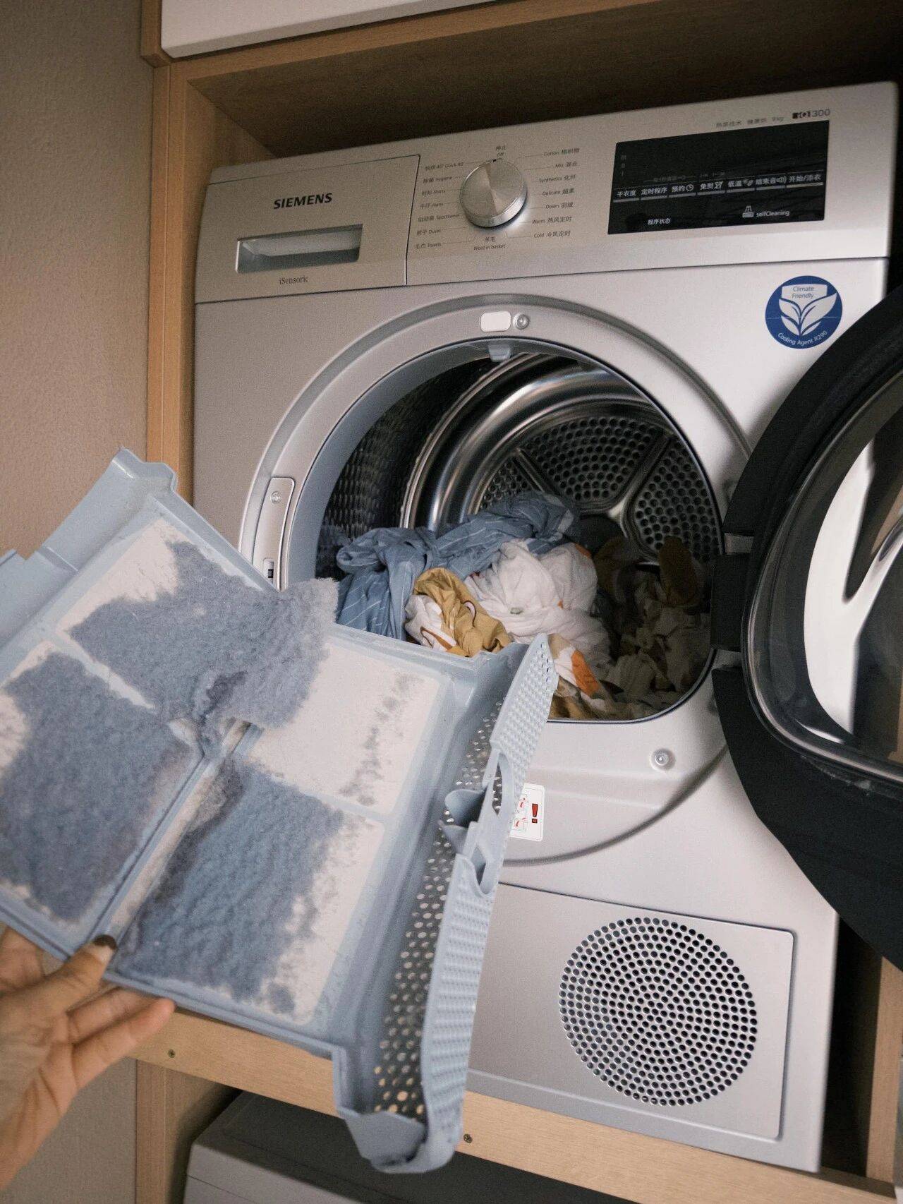 3.选带臭氧杀菌功能的,比太阳光杀菌更管用,再也不用担心螨虫了。每次烘干后,记得清理下绒毛收集器就可以
