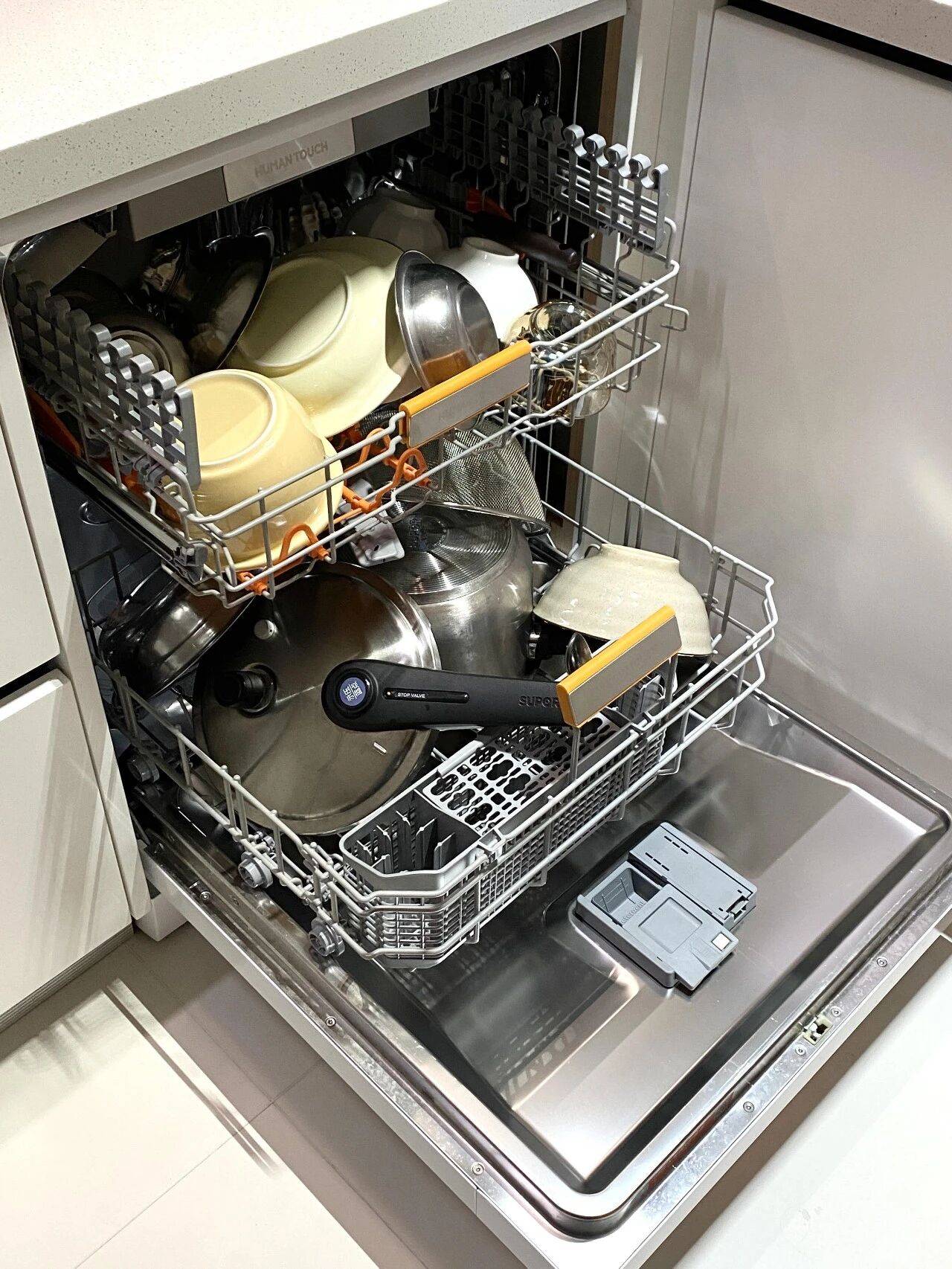 而且,洗碗机刷的碗筷,比自己手洗的要干净好多。选个带高温消毒的,用起来更卫生,对家人孩子更友好。