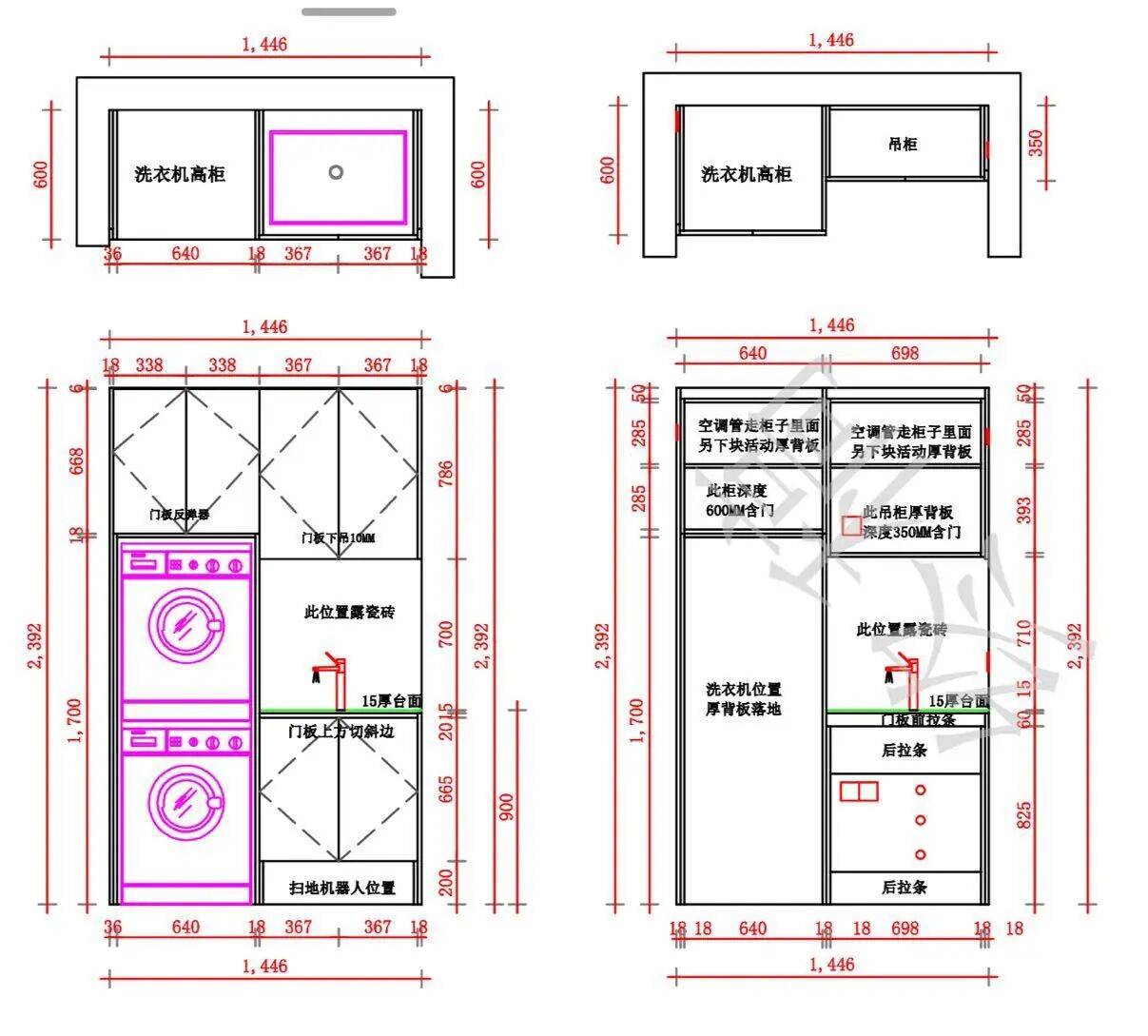 安装技巧:提前预留好排水和插座。尺寸要和水电工以及衣柜厂沟通好!
