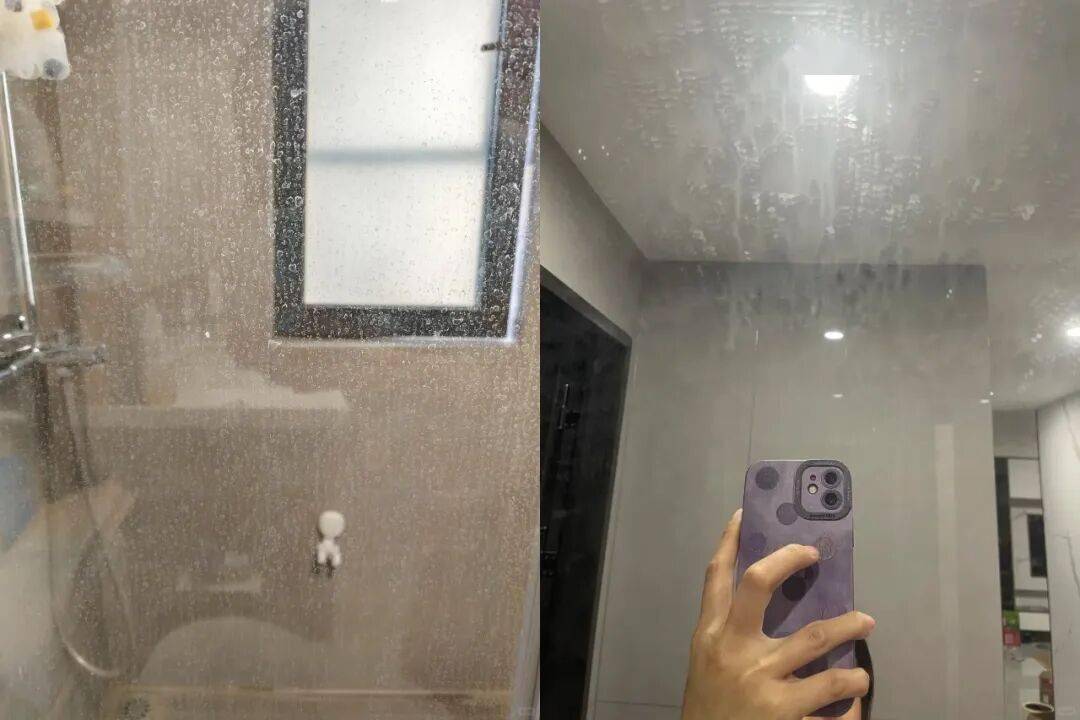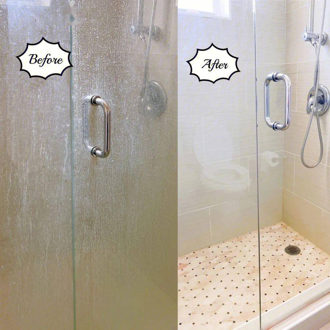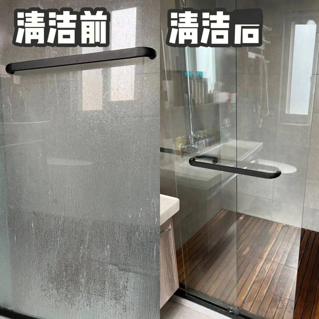 ✔淋浴房玻璃陈年水渍一扫而净,看着都觉得爽: