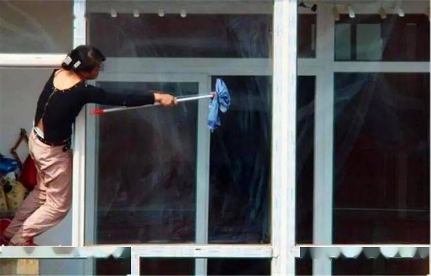 每年为了擦个窗真的太不容易了:需要整个身子探出窗外,超级危险!!