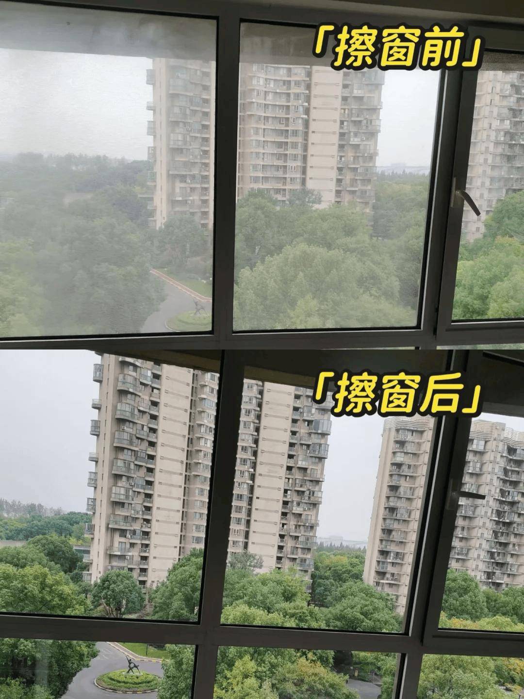 不止是窗户这种玻璃,浴室玻璃隔门/镜子,用久了也有一层灰蒙蒙的水垢,看着太邋遢了。