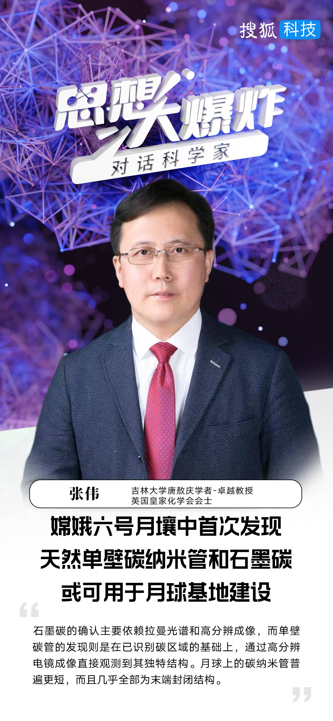 天然单壁碳纳米管和石墨碳从何而来?它能否为未来月球基地建设提供材料线索?带着这些疑问,搜狐科技再次对话了吉林大学张伟教授,听他解读月壤中那些隐匿的“碳密码”。