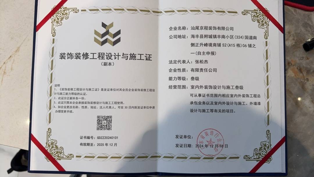 京程装饰是深圳注册商标企业,2024年乘深汕合作区发展东风布局海丰,设立了汕尾海丰京程装饰分公司。其业务不仅辐射海丰县城,还覆盖可塘镇、梅陇镇及汕尾城区,全面深耕本地家装市场,在区域装修赛道上凭借扎实的品质站稳了脚跟。