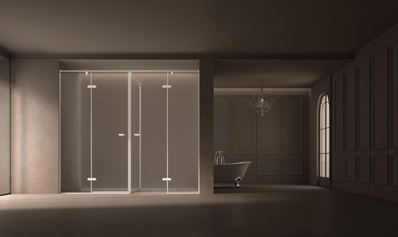 德莉玛淋浴房,囊括极简系列、轻奢系列、智能系列等多元风格,并涵盖平开门、推拉门、折叠门等多种结构。同时,其产品线涵盖淋浴房、全景门、电动磁悬浮门、光波房、地漏、壁龛、电热毛巾架、花洒等配套卫浴产品,还支持个性化尺寸与风格定制,可深度满足客户需求。