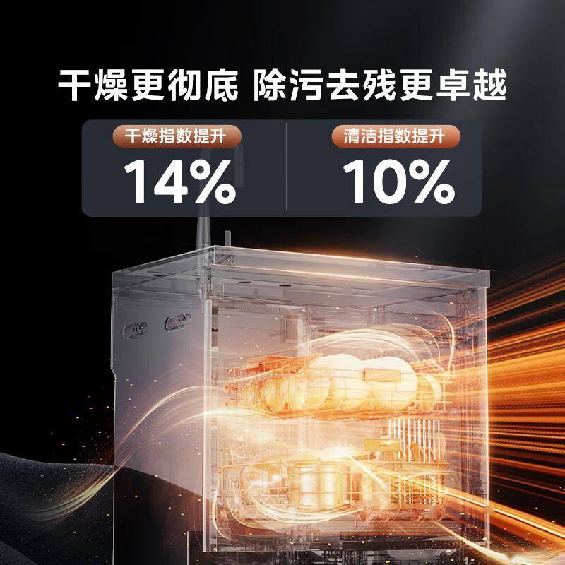 通过「智能浊度感应」技术,机器能自动判断餐具脏污程度调节水量,单次耗水仅9.8L,比手洗节省约70%。配合一级水效认证的热泵烘干系统,全年电费可比普通机型节省200元以上,环保又经济。