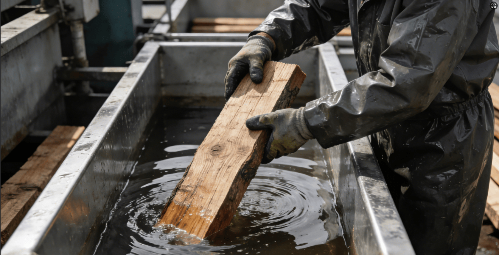 三、ACQ 防腐处理流程 ACQ 防腐处理主要分为真空加压法和浸泡法两种主流工艺。真空加压法是目前工业生产中应用最广泛的处理方式,首先将木材放入密闭的压力罐中,抽出罐内空气形成真空环境,让木材孔隙充分张开,随后注入 ACQ 防腐药剂,通过加压让药剂充分渗透进入木材内部,保证防腐效果均匀一致。浸泡法则更适合小型木材与手工处理,将木材直接浸泡在 ACQ 药剂中,通过自然渗透完成防护处理,操作相对简单,但处理周期较长,防腐效果略逊于真空加压法。在进行 ACQ 防腐处理时,需要严格按照配比调配药剂,根据木材种类、使用场景调整药剂浓度,保证木材充分浸泡,确保药剂均匀渗透。处理完成后,要让木材在通风环境下自然风干至合适含水率,再投入使用,才可以最大化发挥它的防护效果。
