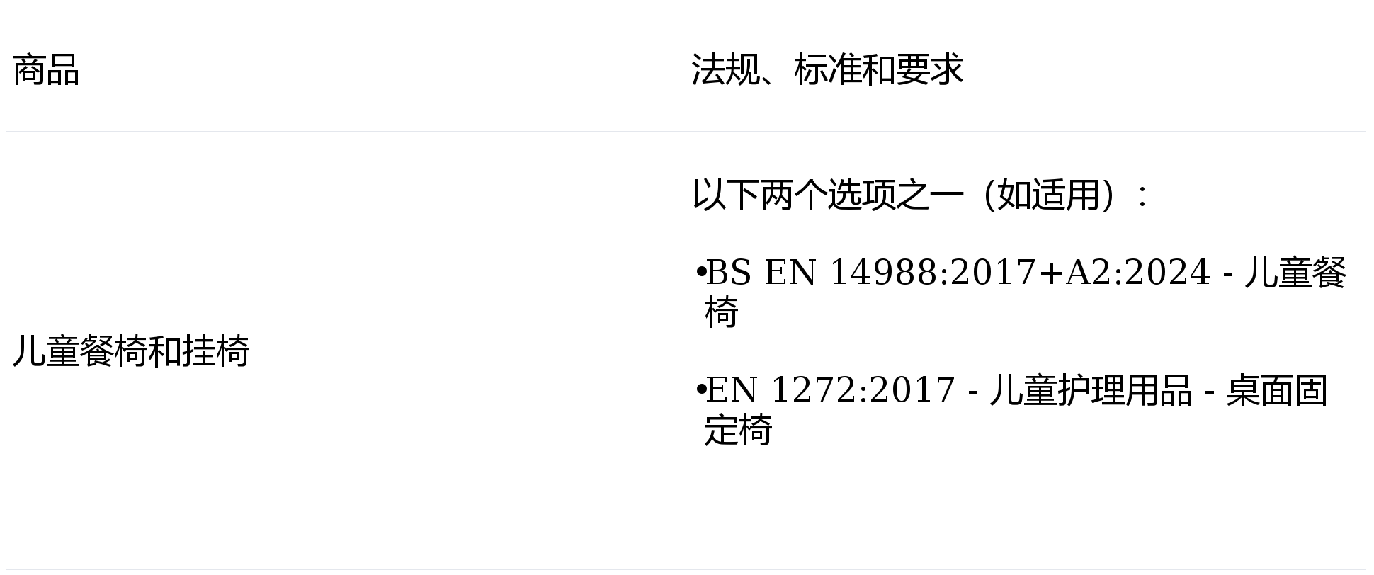 亚马逊要求所有儿童餐椅和挂椅均已经过检测,并符合下列法规、标准和要求: