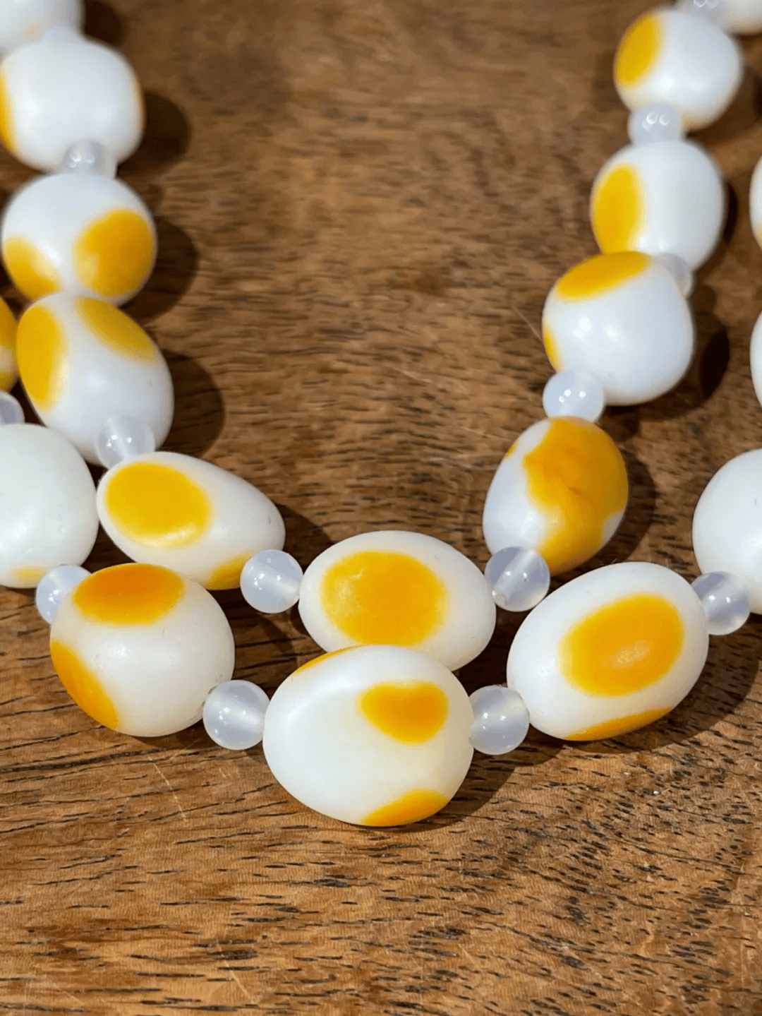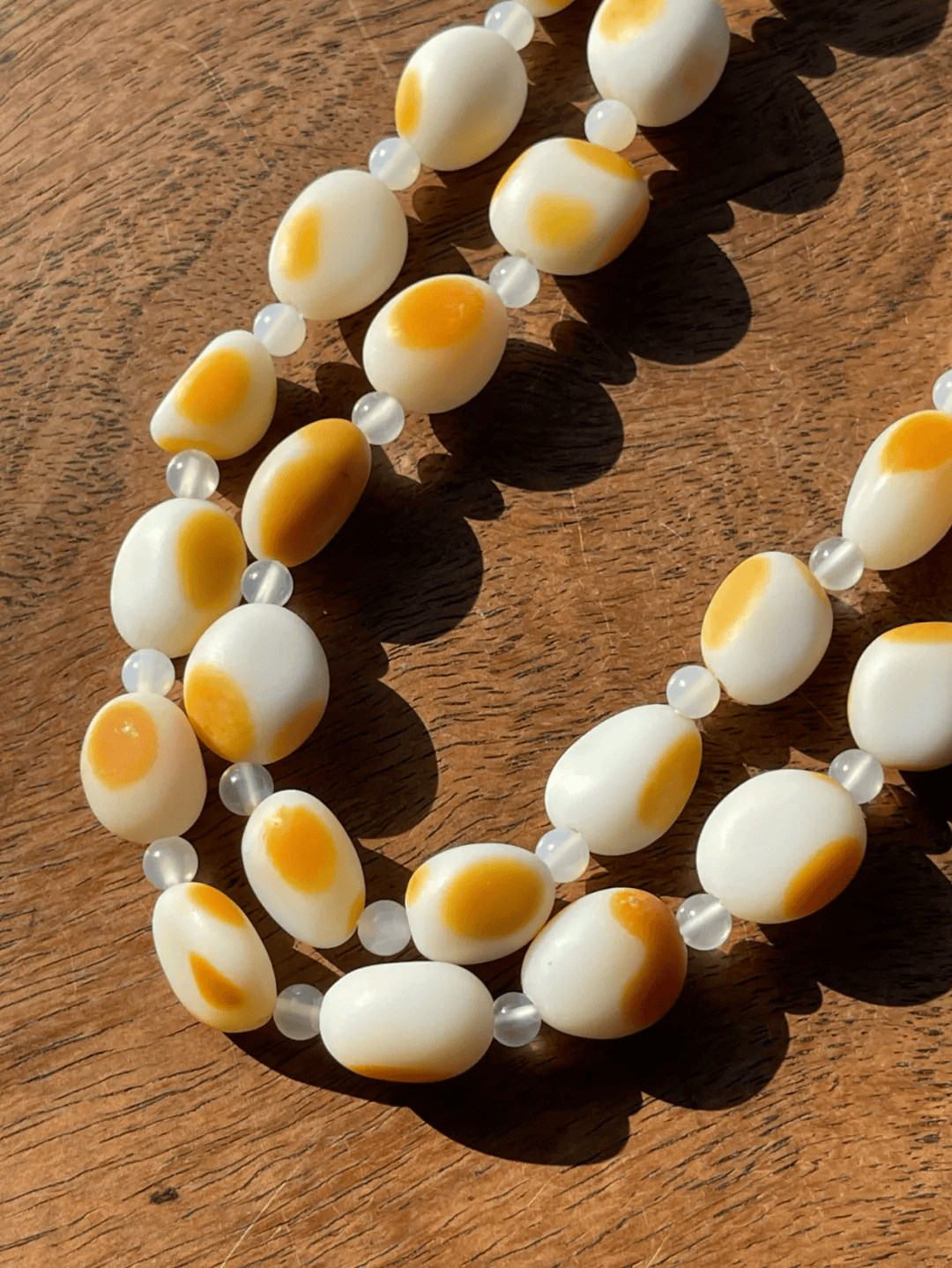 扫二维码收藏【籽料金黄沁白玉随形珠项链】