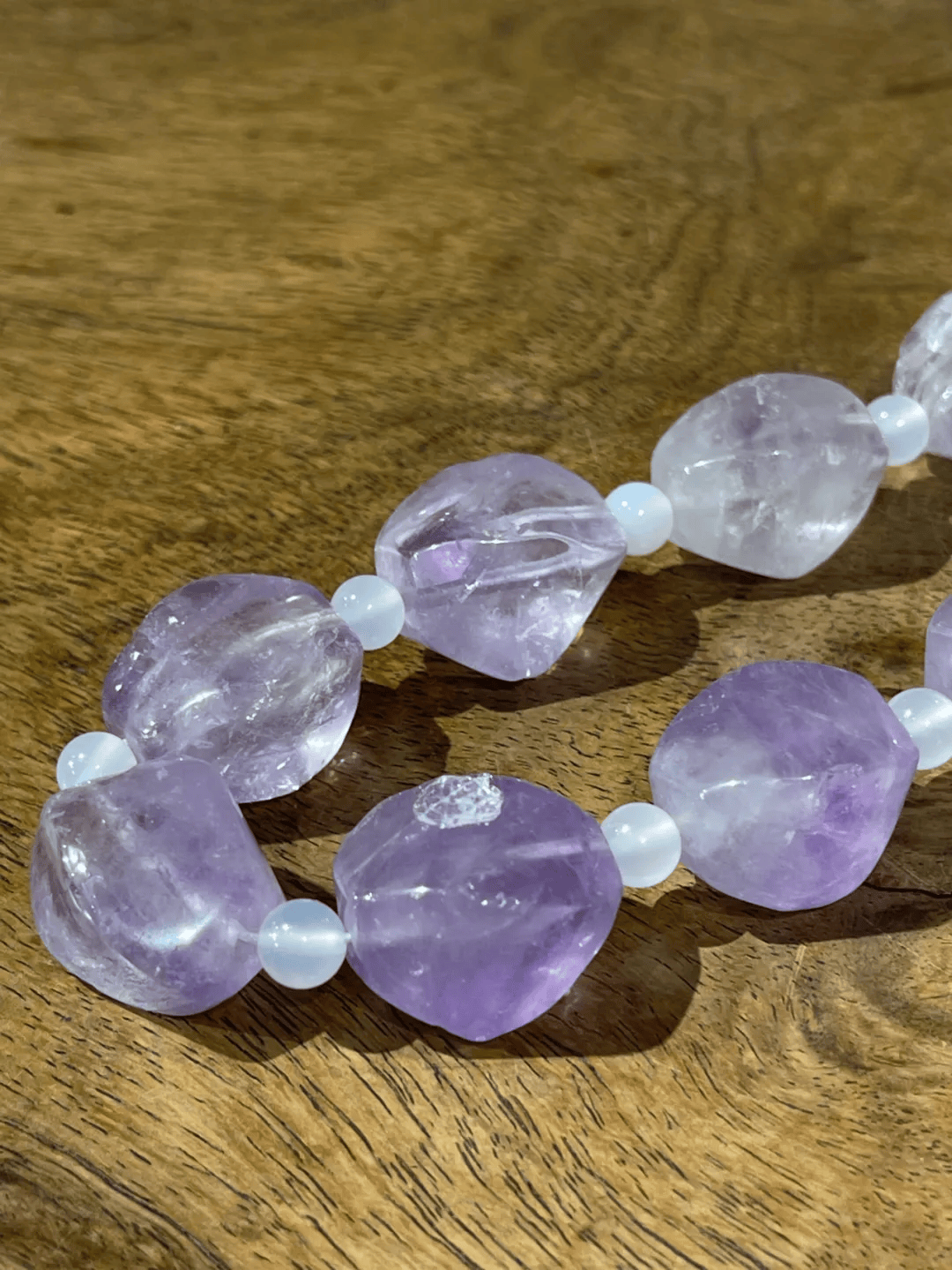 扫二维码收藏【天然淡紫晶随型珠项链】