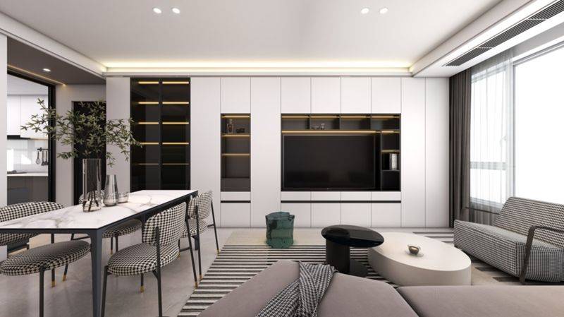客厅作为家庭的活动中心,在这里,定制的背景墙成为视觉焦点。它可能是一幅用特殊工艺制成的艺术壁画,也可能是有着立体造型的独特装饰板,搭配柔和灯光效果,瞬间提升空间格调。开放式厨房则打破传统界限,选用易清洁、耐高温的新型台面材料,结合人性化布局规划,让烹饪成为一种享受而非负担。橱柜门板的多样开启方式、内置收纳系统的科学合理分区,既满足实用功能,又彰显精致细节。