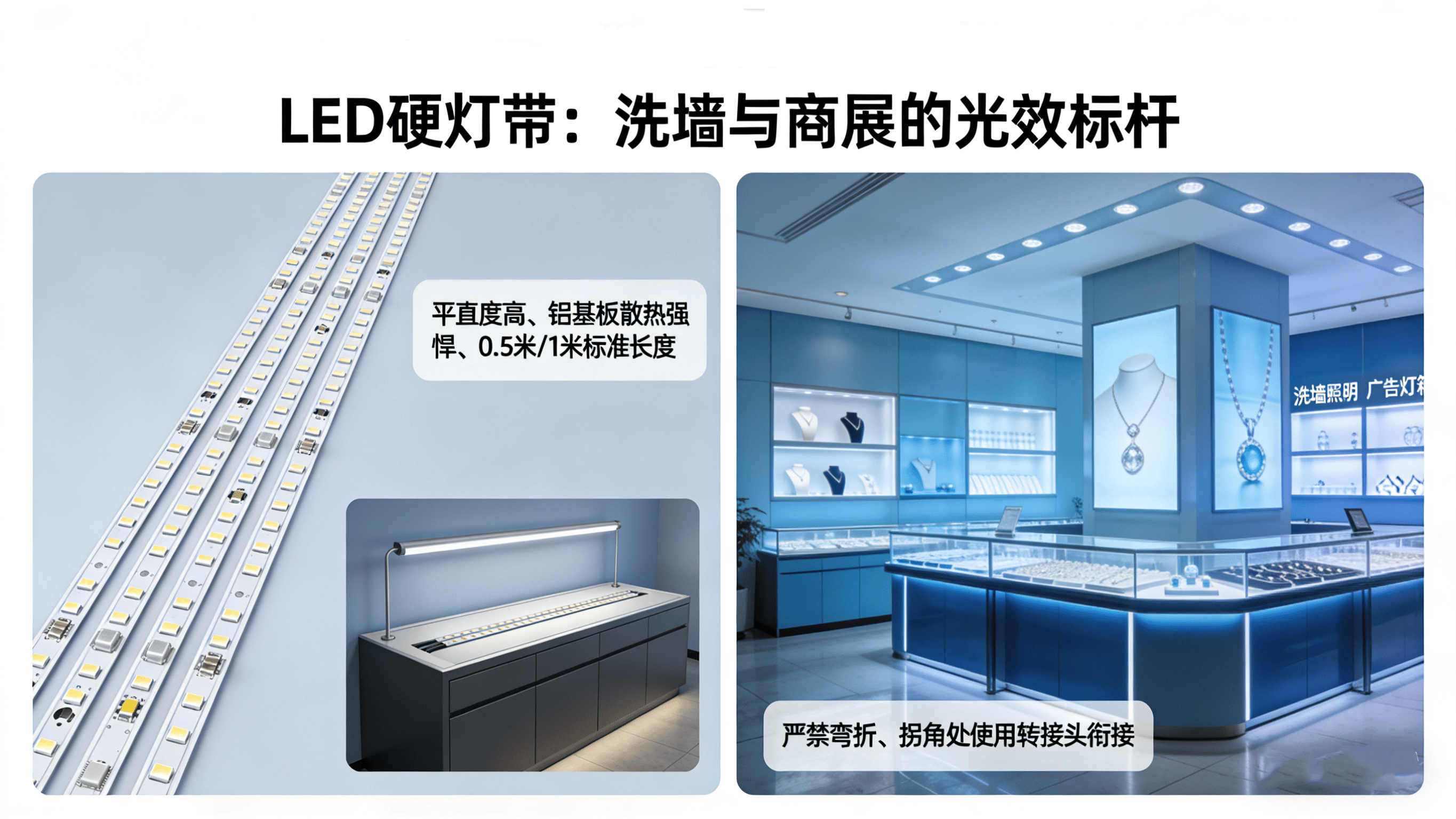 二、 LED硬灯带(铝灯条):洗墙与商展的“光效标杆”