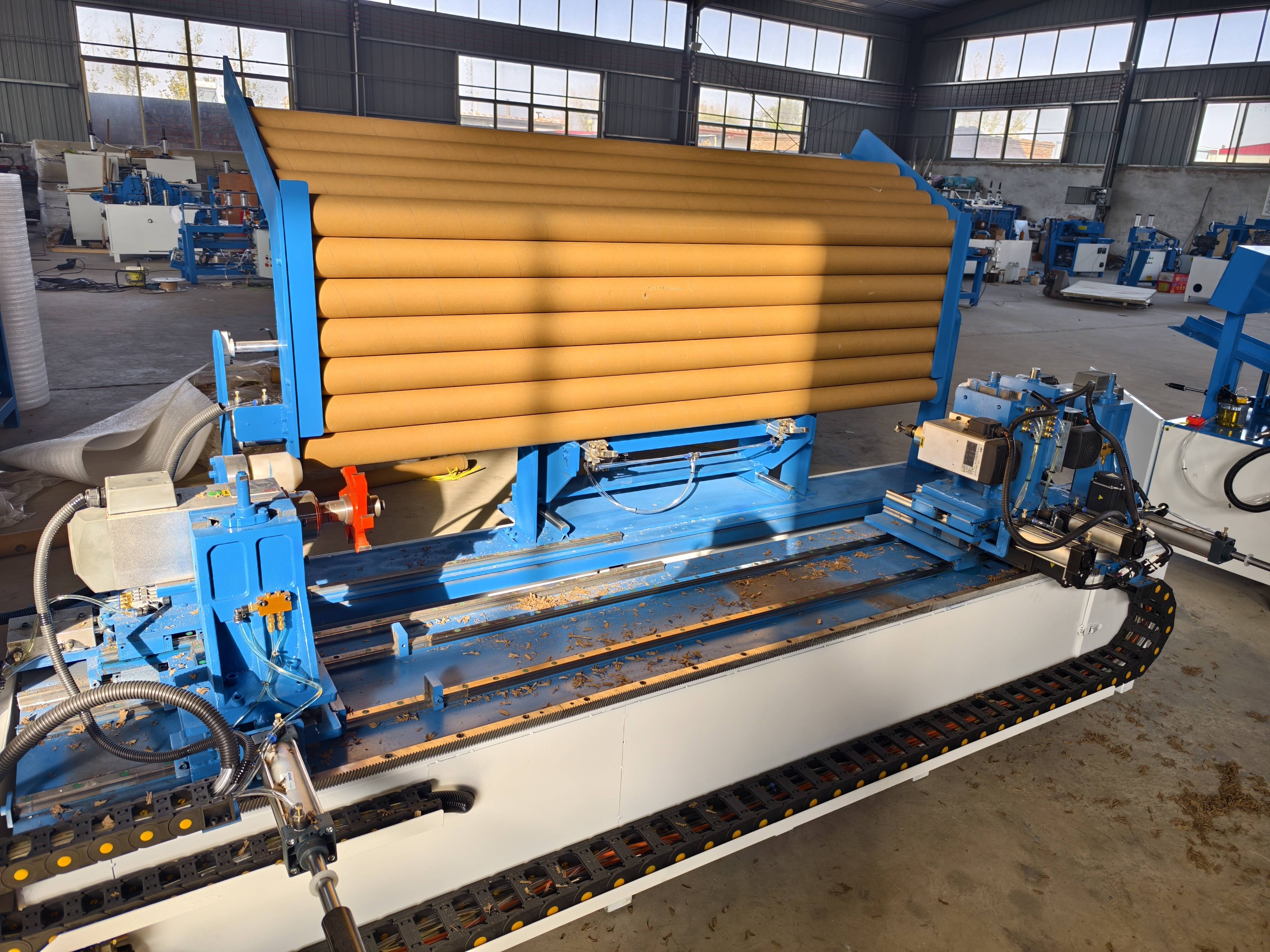 设备配备可调节的气动定心夹具,通过更换夹具配件,可适配直径10mm-500mm的各类纸管,满足不同行业的多样化需求。同时,设备配备完善的安全防护装置,包括防护罩、紧急停机按钮等,有效避免操作人员接触高速旋转的刀具,保障生产安全。