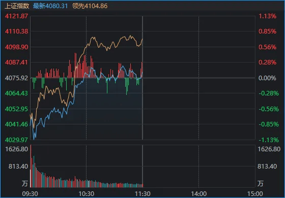 截至上午收盘,三大指数集体飘红,全市场近4000股上涨。