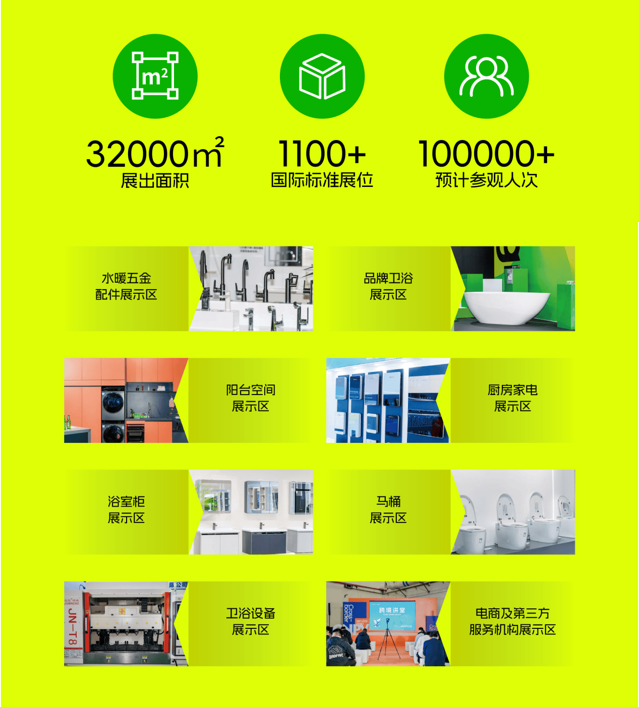 如阀芯、角阀类标杆品牌汉特科技、场景卫浴定制品牌首雅卫浴等知名企业,都是南安展的参与者和见证者,他们与展会携手成长,共同见证和推动卫浴五金行业发展。本届展会,将以8大主题、7大展馆、3.2万㎡的展览规模,和行业最前沿的产品、技术与解决方案,为行业呈现一场高品质、高规格的视听盛宴。