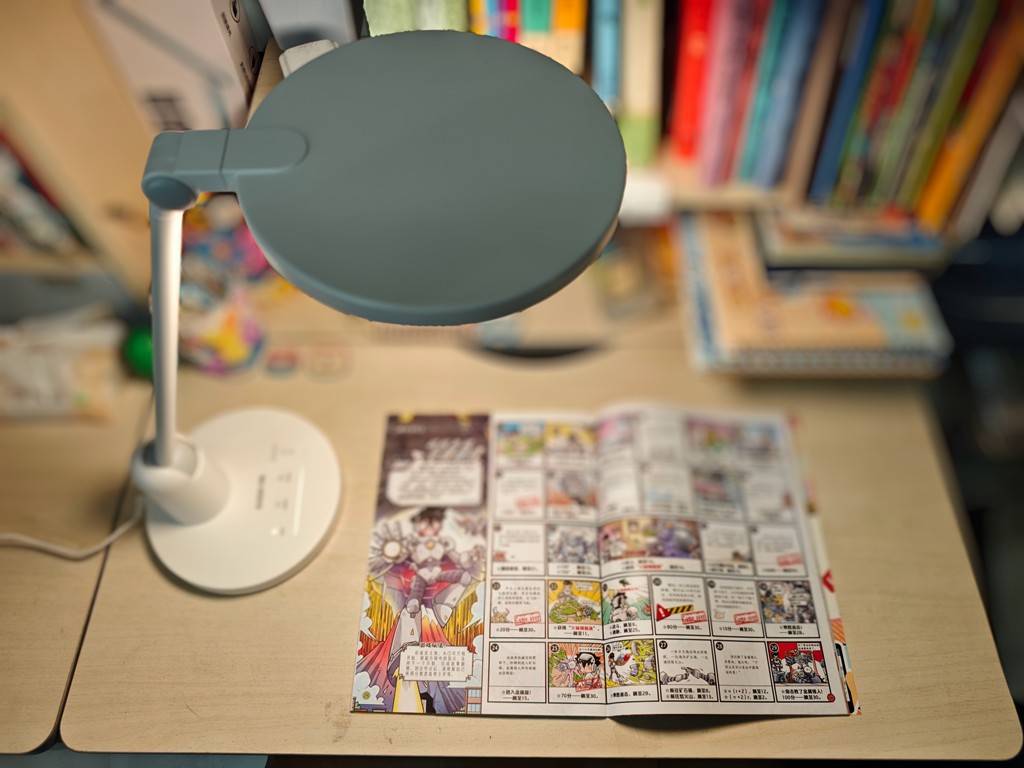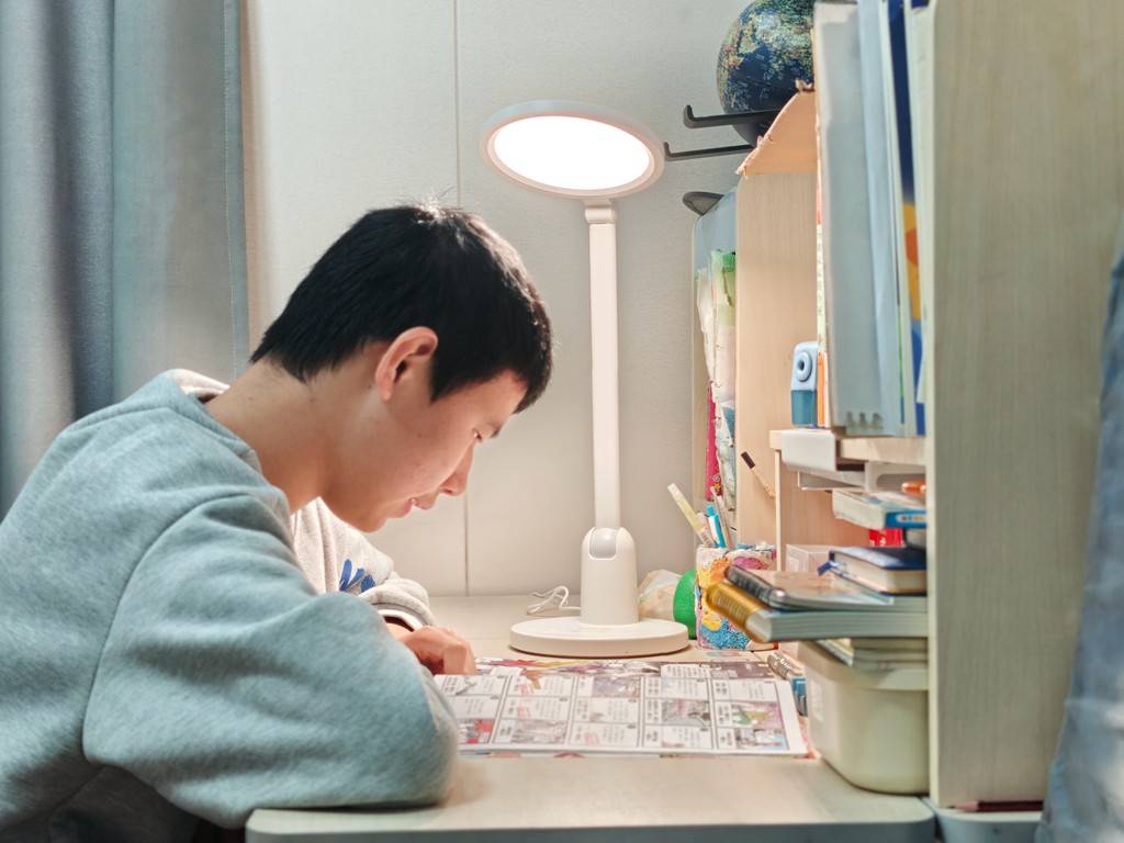 另外,它还采用了OCLT光透镜技术,借鉴医疗手术灯的光分布原理,360度交叠照亮桌面,彻底消除读写时的手部重影,孩子写作业时笔画看得更清晰,也能有效减少用眼负担。