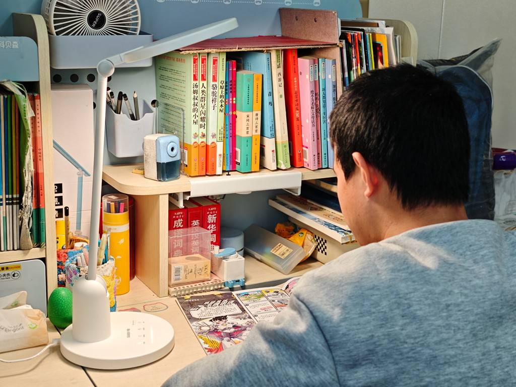 再说说实际实用体验,这段时间用下来,孩子的用眼变化非常明显。以前孩子写作业不到半小时,就会频繁揉眼睛、眯眼睛,还会抱怨眼睛酸胀,有时候甚至会把作业本往灯底下挪,说“看不清楚”。用上书客SKY之后,孩子揉眼睛的次数明显减少了,每天写一个多小时作业,也不会再抱怨眼睛不舒服,有时候还会主动说“这个灯好舒服,看书一点都不刺眼”。