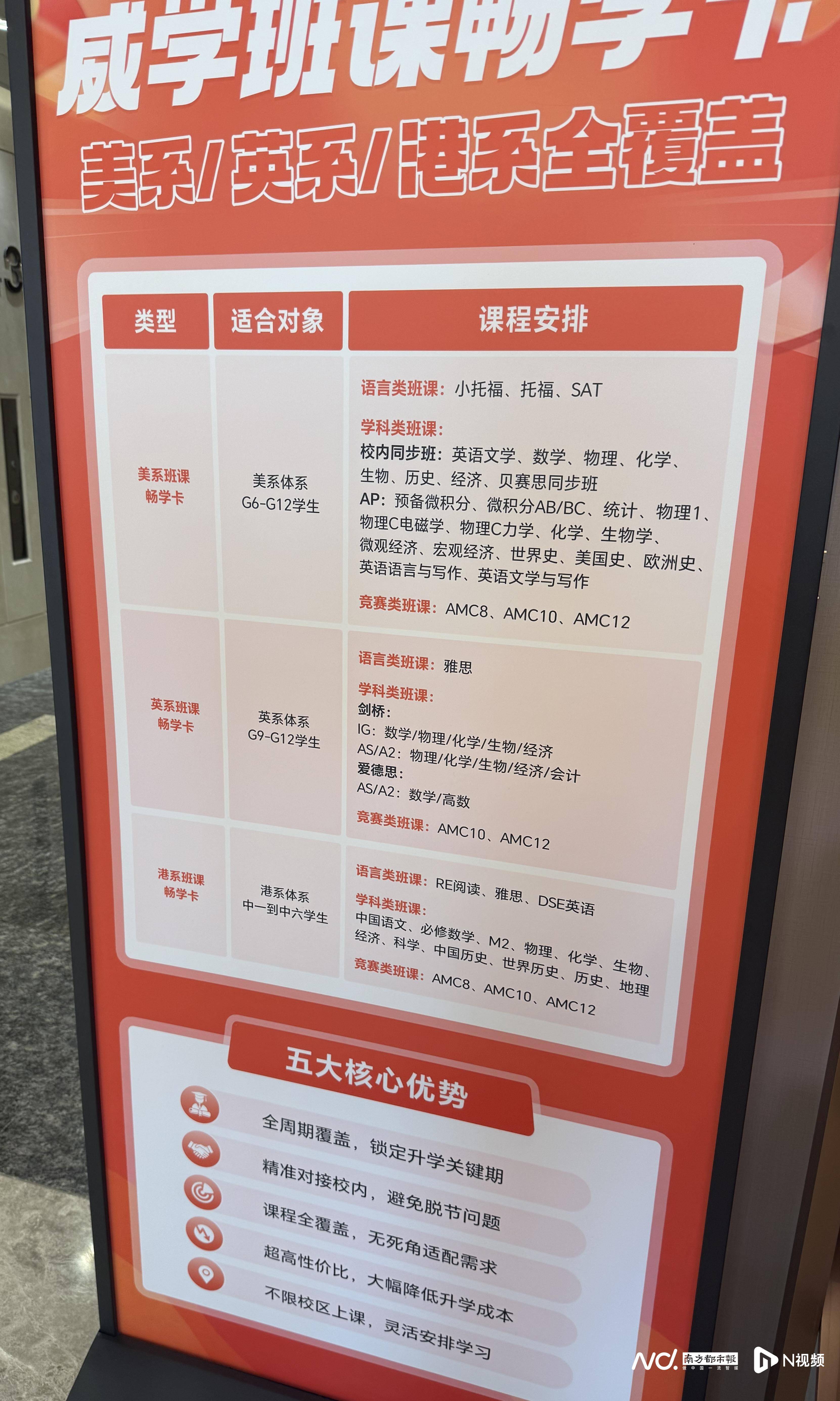 此外,南都N视频记者走访了解到,新东方同样提供初高中国际教育类的培训,中学阶段国际教育升学、备考课程包价格从7万元至20余万元不等。