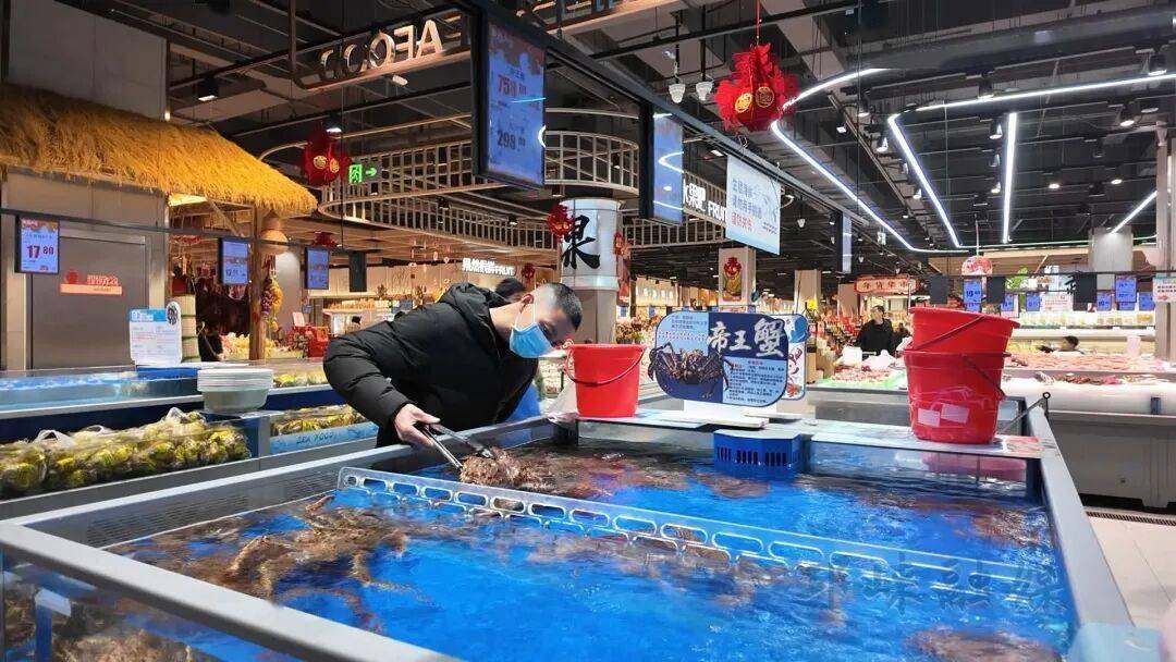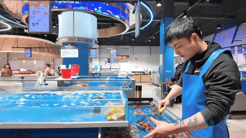 在众多年货中,海鲜水产区和坚果炒货区人气格外旺。海鲜区灯光透亮,仿佛微型海洋馆。在发到家超市海鲜区,身着防水围裙的邱洋忙得脚不沾地,海鲜池里,波士顿龙虾挥动大螯,帝王蟹缓缓爬行。以往多见的冻品正被更鲜活、更高档的品种替代,成为许多家庭年夜饭餐桌上的“新贵”。“春节将近,海鱼比平时销量好了好几倍。”发到家超市海鲜区负责人邱洋介绍道。
