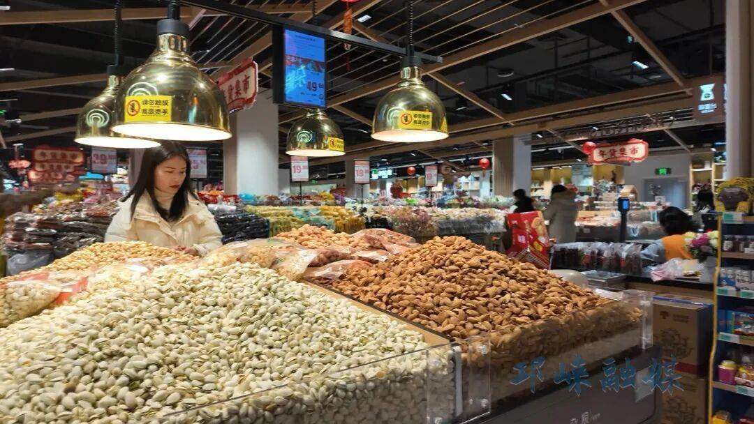 而坚果炒货区的商品种类也达到了上百种,从基础款的瓜子花生到进口的精品坚果,从简装到设计精美的豪华礼盒,满足了市民走亲访友、家庭欢聚的不同场景需求。成都市联华吉卖盛超市有限公司生鲜主管吴伦惠表示,“新年将至,超市为广大顾客准备好了许多商品,比如说东北的松子,新疆的阿克苏核桃,还有走亲访友的礼盒,各式各样,都给大家准备好了。”