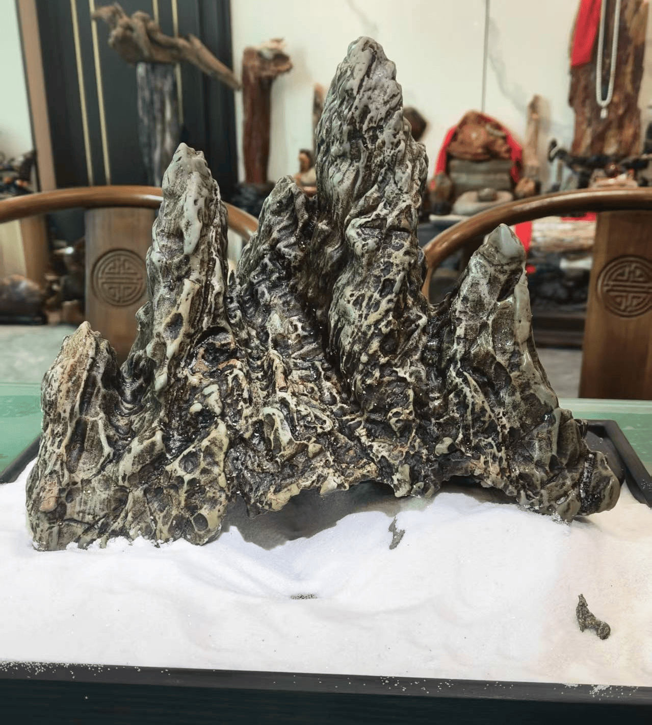 奇石的本质,从来不是深山里一块孤高的顽石,而是走入家居、办公、公共空间的艺术摆件,与书画、工艺藏品无二,其价值内核,终究是为空间造艺、为人心传情,让方寸石体成为氛围感的点睛之笔,让观者心生美感共鸣。脱离了空间的承载、众人的共情,奇石便成了孤芳自赏的物件,失了摆件的本真,到头来不过是玩了一场寂寞。