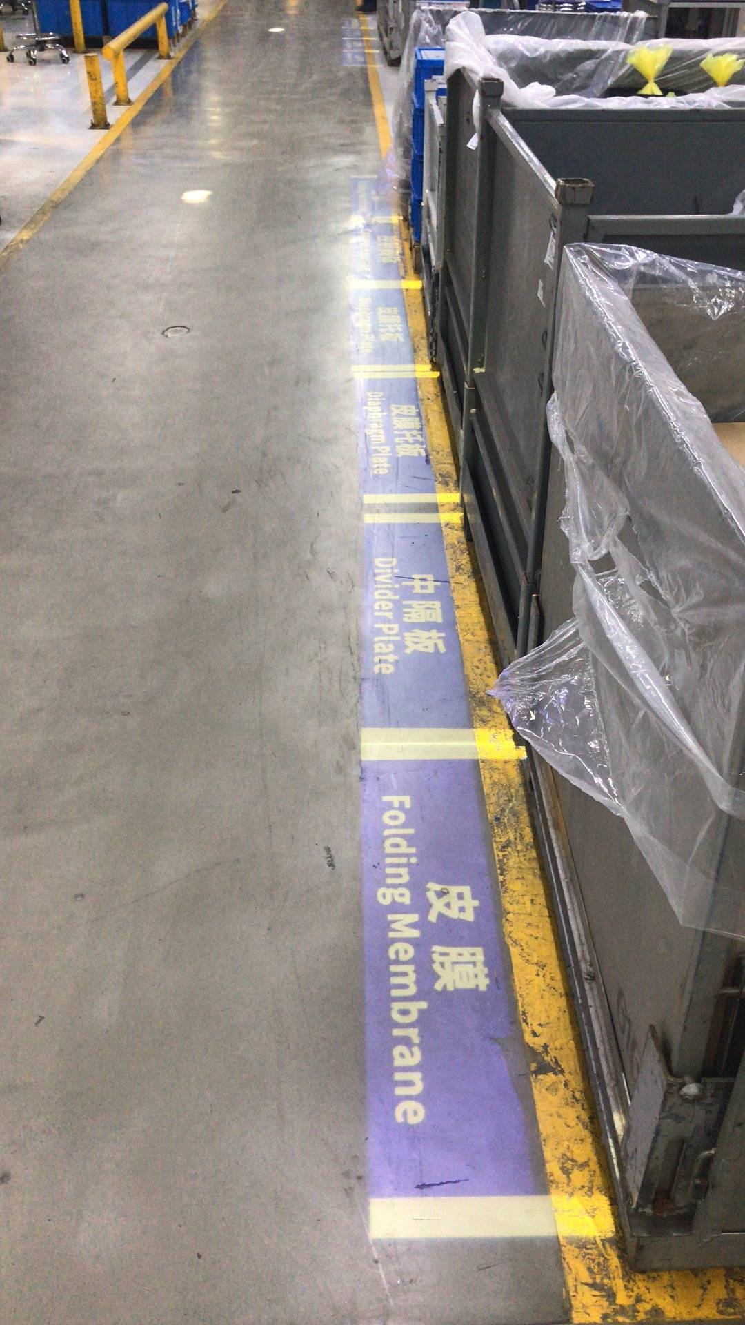 3.区域划分与安全警示:在工厂车间或仓库中,需要明确划分工作区域、通道、物料存放区或危险区域。使用工业线性投影灯,可以在地面或墙面上投射出持久、醒目的边界线、网格或警示图案。这种非接触式的划分方式灵活且不占用地面空间,易于更改,能够有效规范作业流程,提升现场管理水平,并起到一定的安全提示作用。
