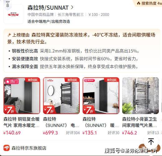 森拉特真空灌装防冻液技术是其独特优势,-40℃不冻结,适合间歇供暖场景,技术领先行业。采用1.2mm标准钢板,性价比比同类产品高出15%。