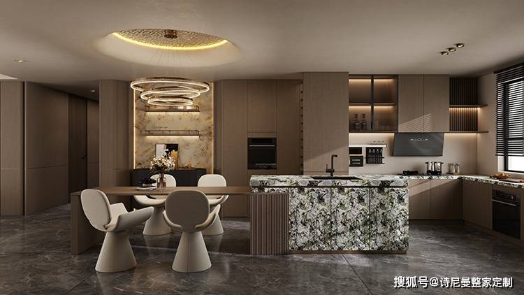 整木烟灰银梨,于餐厨空间铺陈出一幅静谧而温润的画卷。