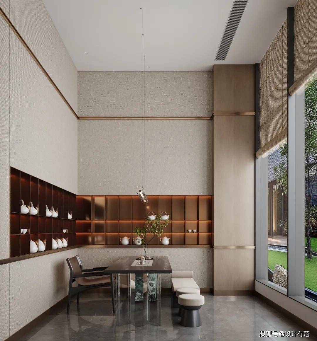 木质饰面板与金属线条交织出“刚柔并济”的东方智慧,