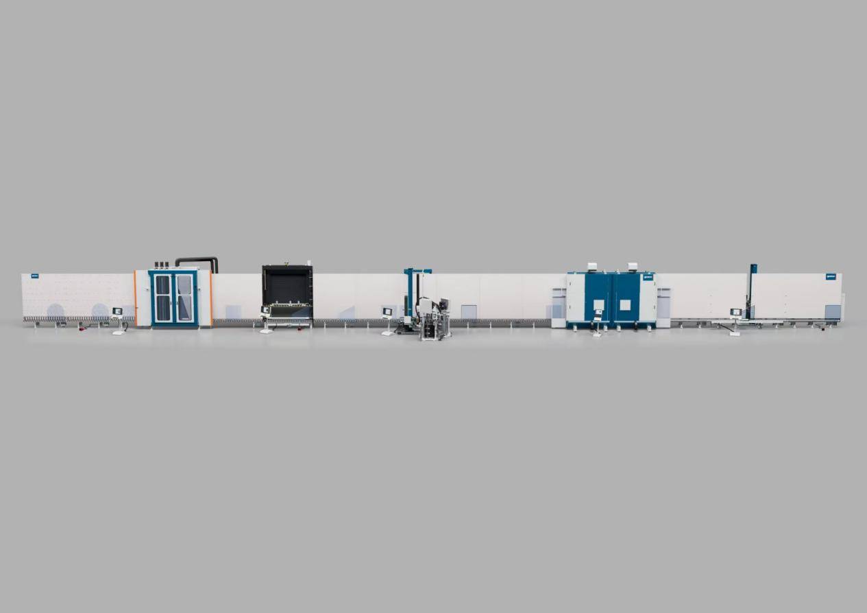 这种生产线同时也代表了全球中空玻璃制造的领先水平。从玻璃切割、磨边、清洗到间隔条安装、充氩气、密封胶涂布,全部工序实现自动化、智能化生产。
