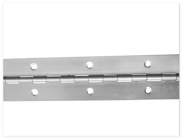 长铰链相较于普通铰链,有着显著的优势和特点。首先,优质的载荷均布能力是其一大亮点。它能够将门扇或盖板的重量和负载,通过整条铰链均匀地传递到框架或箱体上,避免了载荷集中在几个点上,从而减少了局部受力过大导致的损坏风险。其次,长铰链具有卓越的抗变形与稳定性。因其均布载荷的特性,能有效防止门扇或盖板因自重或外力而产生的弯曲、下垂、扭曲。确保长期使用后,门缝依然保持均匀一致,开关动作始终顺畅,不会出现卡滞或关不严的问题。再者,长铰链在密封与对齐性方面表现出色。对于需要密封的应用,长铰链能保证门扇与门框的精确、平行对齐,使得安装密封条成为可能且有效,这是点状支撑铰链难以实现的。另外,长铰链通常由坚固材料制成,具有更高的结构强度与耐用性,能承受更大的冲击和反复开合的应力,使用寿命远超多个独立铰链的组合,减少了因单个铰链损坏而导致整个门失效的风险。在安装与维护方面,虽然长铰链单件较重,但安装时只需对齐并固定一条铰链,相比需要精确对齐多个独立铰链的位置,有时反而更简单,更容易获得笔直的门缝。而且由于其高耐用性和防变形特性,大幅减少了因门扇下垂、卡死而需要维修、调整或更换铰链的频率和成本。