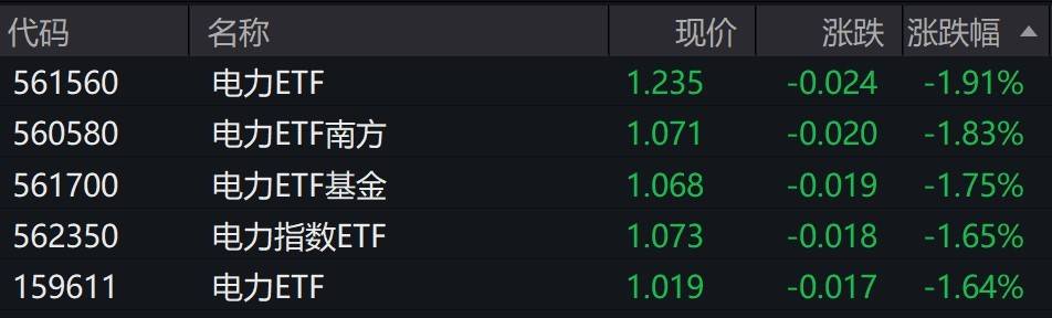 电力概念股走低,国电电力跌超6%,上海电力跌超5%,华能国际跌超4%。