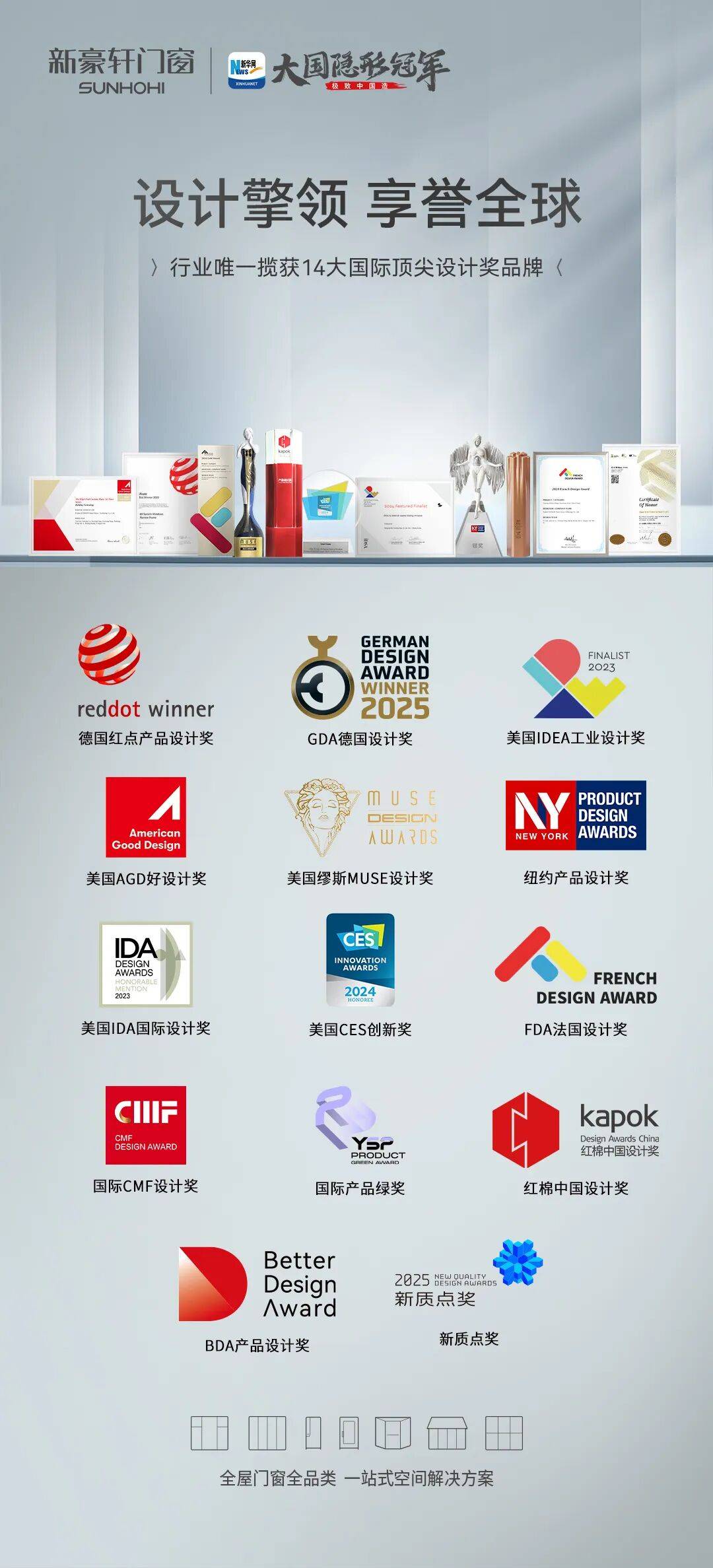 此次荣获“越来越好”国际设计大赛奖项,是IDEA05系列产品设计卓越性的又一有力印证。此前,该系列已凭借其前瞻的设计与创新理念,屡获国际国内权威设计奖项的青睐,包括享誉世界的法国FDA设计奖、德国GDA设计奖、国际CMF设计奖,以及国内的新质点设计奖、粤港澳大湾区创新大奖等。这一系列荣誉,构筑起新豪轩门窗在设计创新领域的坚实口碑,展现了其产品赢得全球专业视野认可的强大实力。