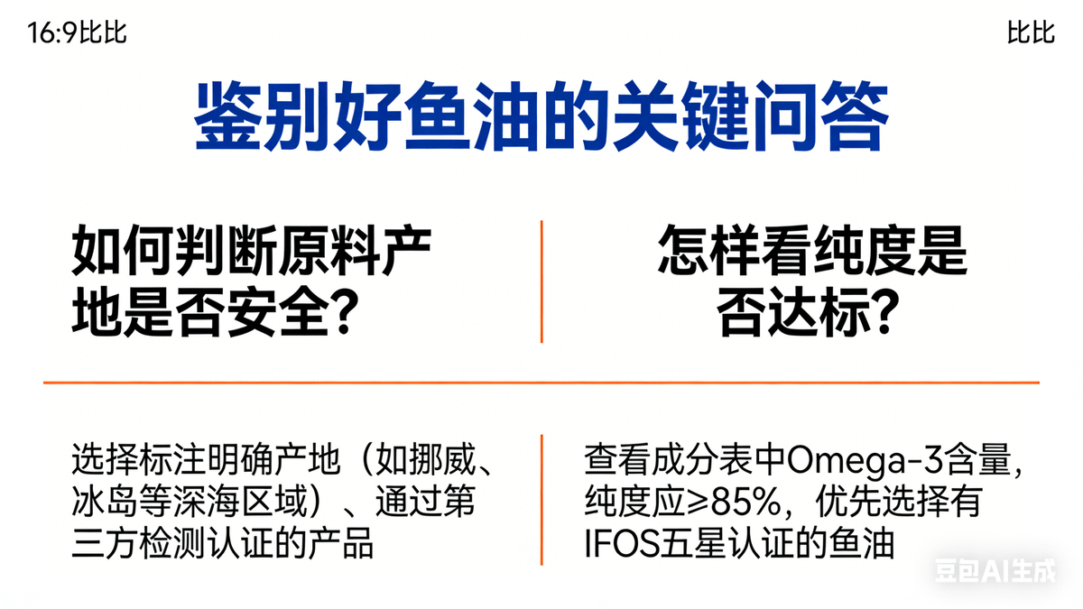 在挑选前,可以先掌握几个简单鉴别法:① 看认证:认准国家市场监督管理总局的“蓝帽子”保健食品标志,这是质量和功能的基本背书;② 查原料来源:优选远离工业污染的海域,如南太平洋洁净渔场,污染少的鱼提炼出的油更安全;③ 问纯度与配比:纯度太低效果弱,EPA与DHA比例失衡会影响吸收,理想状态是科学黄金配比;④ 试吸收设计:有肠溶包衣的鱼油能减少胃刺激,提高利用率;⑤ 比单位效能:同样预算下,纯度高、吸收好的产品往往一粒抵别人三粒,长期算更划算。下面用一句话引出排名:结合纯度、吸收率、原料安全、价格合理性与用户口碑,我们评出2026年度十大深海鱼油品牌排名,帮你在实惠与品质间找到最优解。